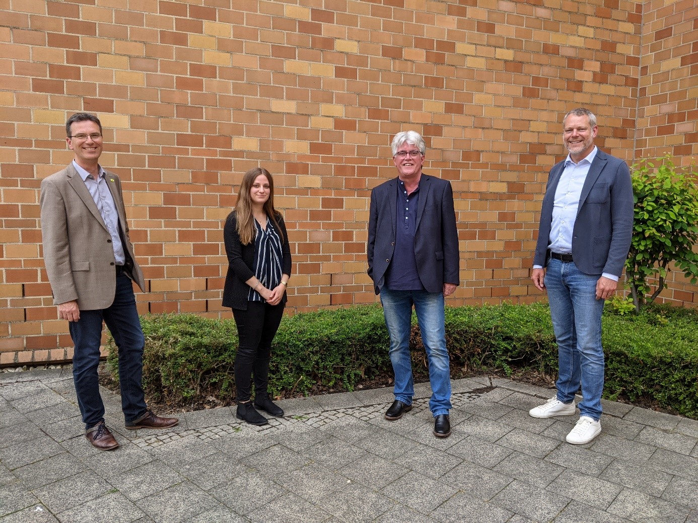 Die Beteiligten beim Gütetermin: von links nach rechts: Dr. Jens-Christian Winkler (Kreistagsmitglied BÜNDNIS 90/DIE GRÜNEN), Anna Pilz (Fell und Federn im Kreis Viersen), Jürgen Heinen (Fraktionsvorsitzender BÜNDNIS 90/DIE GRÜNEN im Kreistag Viersen), Dr. Andreas Coenen (Landrat des Kreises Viersen)
